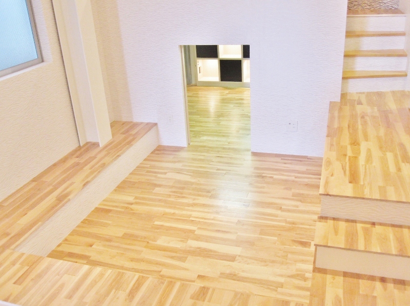 リビングと蔵収納入り口(床は無垢の樺桜です。)
